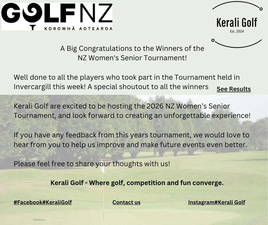 Congratulations from Kerali Golf to all the winners of the NZ Womens Senior Tournament held at Invercargill Golf Course this week